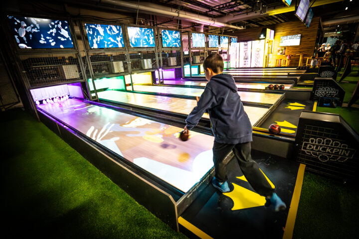 No andar superior, o The Club House oferece uma proposta diferente: não é apenas um sports bar, mas um espaço interativo cheio de atividades. Há simuladores esportivos, boliche duckpin – uma versão mais compacta e divertida do boliche tradicional que os meninos amaram – além de um mini golf temático canadense cheio de referências culturais. O ambiente mistura lazer, gastronomia e entretenimento, sendo uma ótima opção para encerrar o dia em família. Nós jantamos no local e nossa experiência foi incível: o lugar é lindo, atendimento ótimo e espaço bem amplo: conseguimos uma mesa ao lado do boliche e enquanto os meninos se divertiam muito nós estavamos sentados bebendo algo e curtindo também.