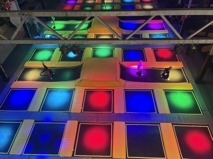 - Uma área gigante com trampolins interligados