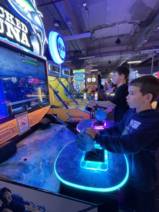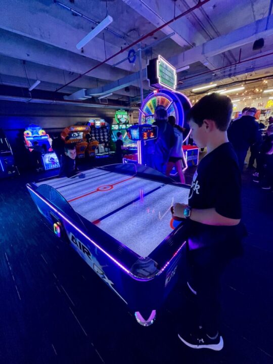 O ambiente é enorme e por mais que esteja cheio de crianças você tem aquela sensação que não está lotado – e foi isso que eu mais gostei. Ai você olha ao redor e vê a estrutura da fábrica antiga – o que é realmente super legal. É aquele tipo de ambiente onde o tempo passa voando, e você percebe que os adultos acabam se divertindo tanto quanto os pequenos. Vale falar que no Arcade há uma opção de unlimited card, que você paga menos de $30 e joga por 24h o quanto quiser. Neste espaço tem também uma pequena praça de alimentação, parquinho indoor e outras atividades como Slime Factory, que infelizmente não tivemos tempo de fazer – mas os meninos queriam MUITO (vai ficar para a próxima com certeza).