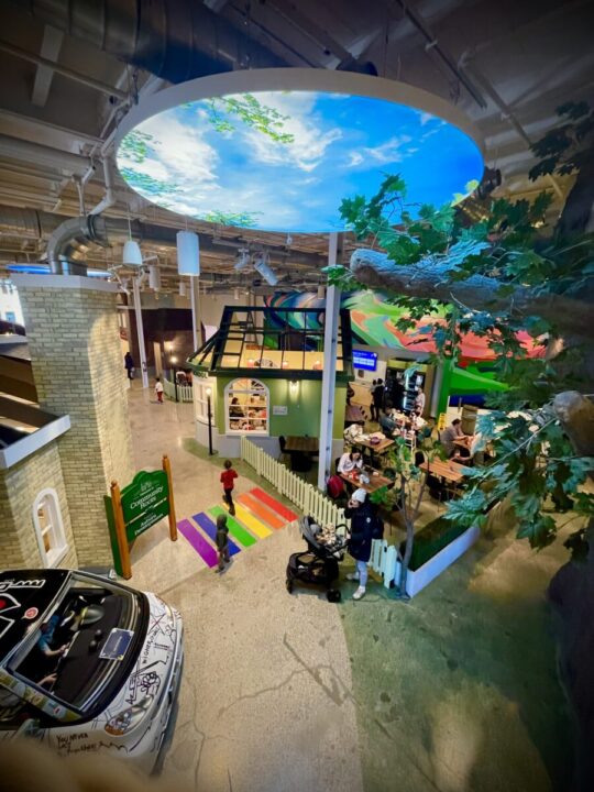 Uma das atrações mais especiais para quem viaja com crianças é o London Children’s Museum, que também fica dentro do complexo (novamente, você não precisa sair na rua para curtir todas estas atrações). O espaço do museu é enorme e foi pensado para estimular a curiosidade e a criatividade dos pequenos por meio de experiências interativas. As crianças podem explorar ambientes imersivos, participar de atividades práticas focadas em STEM (ciência, tecnologia, engenharia e matemática), visitar o planetário e experimentar o Discovery Lab, onde o aprendizado acontece de forma natural através do brincar. Tem parquinho suspenso, cidade com mini supermercado, fazenda onde as crianças podem tirar “leite” da vaca e claro uma área com água. É educativo, envolvente e uma parada obrigatória para famílias.